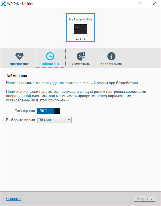 WD Quick View — миниатюрная программа, которая «сидит» в трее и с помощью нее можно безопасно извлечь жесткий диск и просмотреть его текущее состояние.WD Drive Utilities — помощник в настройке и проверке. С помощью этой программы можно упрощенно проветрить «смарт» состояние, наличие ошибок, проверить на битые сектора, настроить режим «сна» и форматировать диск.WD Backup — это уже серьезный инструмент для автоматического создания бэкапов. Во-первых можно создать несколько планов резервного копирования, во-вторых — можно резервировать как отдельные папки, так и всю вашу файловую систему в целом, в-третьих — можно резервировать автоматически каждый час, каждую неделю и каждый месяц. И все что вам нужно будет сделать для того, что бы быть уверенным в сохранности ваших файлов — это настроить план резервирования, настройка которого не займет больше 5 минут. Но еще, помимо того, что эта утилита может делать копии на My Passport, она еще их умеет и на Droopbox сохранять, но тогда вопрос к WD: на что хватит бесплатно предоставленных 2 гигабайт?